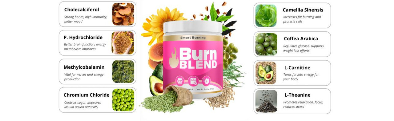 BurnBlend is a thermogenic fat burner that combines natural ingredients to help your body convert stored fat into usable energy. Unlike harsh stimulants or crash diets, BurnBlend aims to work with your body’s natural processes, promoting sustainable fat loss while supporting mental focus and daily vitality.